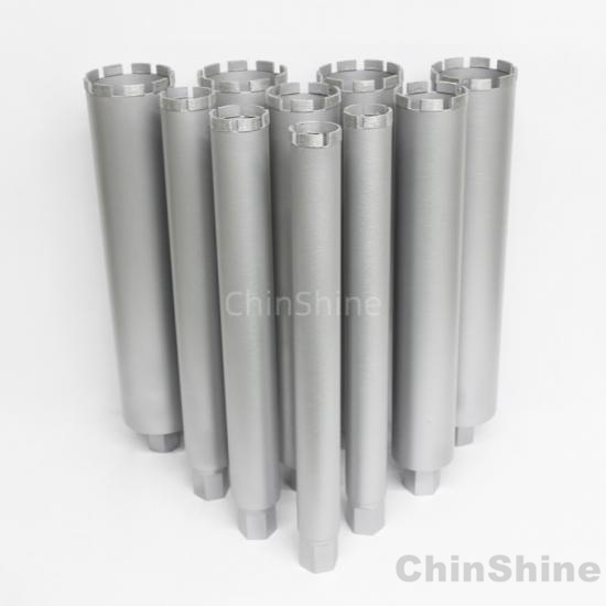 Arix diamond core bit, arix core drill bitChinShine Arix Diamond core drill bits, value lies in diamond powder concentration and precious metal bond. We make the arix diamond segment with height 12mm to ensure sharpness and lifespan. The effective length of the ChinShine arix diamond core drill bit can be customized, most customers choose 450mm, and we can provide different lengths of the bit extension rod, so that the drill can also work in special environments. The 1 1/4-7UNC female threaded is suitable for most customers, M22, 1/2 GAS are also available. The drill pipe adopts dynamic balancing technology to ensure that the work will not produce unnecessary vibration, and will not produce a lot of dust.