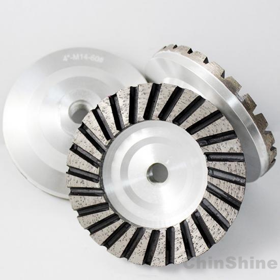 ChinShine aluminum turbo diamond grinding cup wheel features light weight aluminum-body for less stress on the grinder than the normal steel body. Designed for faster and more aggressive grinding and shaping for granite, marble and natural stone.
